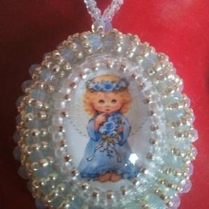 Использовала бусины, подаренные Марией. Они такие красивые, небесно-голубые.