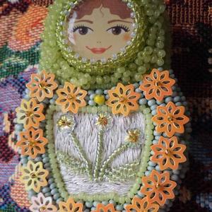 Тоже решила присоединиться к матрёшкомарафону (делала, правда, ещё до появления мастер-класса). Личико от Татьяны Лабутиной, бисер чешский и немного японского, мелкие сваровские цветочки и китайские цветочные пайетки, чуток мулине, сзади...