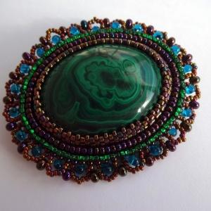 Повтор брошки. Первая распущена, так как не устраивала размерами и рисунком камня. Эта брошь поменьше, рисунок малахита интереснее и без ненужной капельки решила сделать)