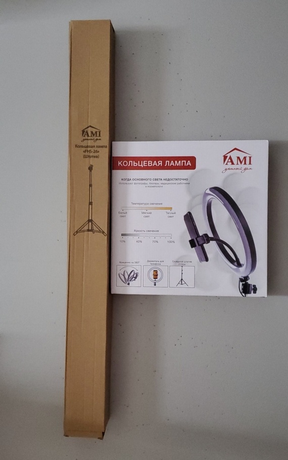 Вот что на коробках. Штатив 2 1 м. 4 режима света. Есть регулировка интенсивности света. Можно от сети и от usb.