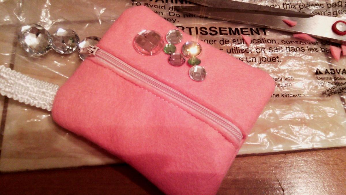 Сумочка из розового фетра, с петелькой и стразами.