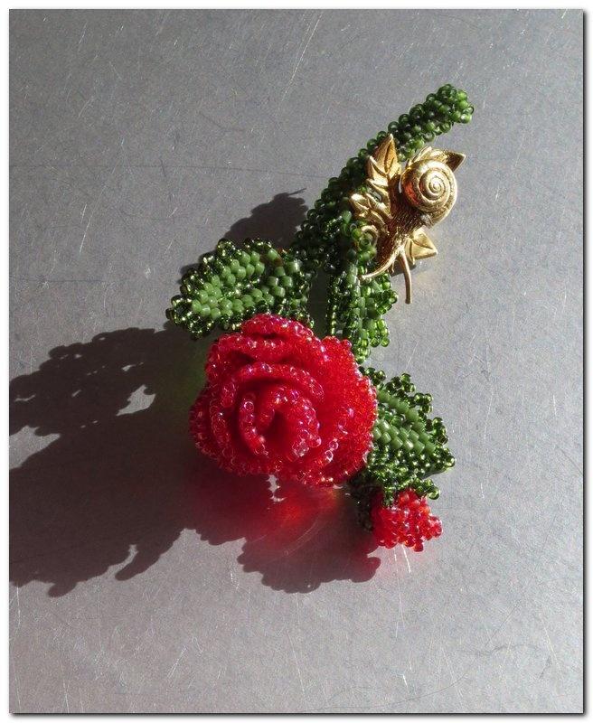 Брошь выполнена из бисера ТОНО 15-ка. Улитка – авторская фурнитура Александра Краснова.