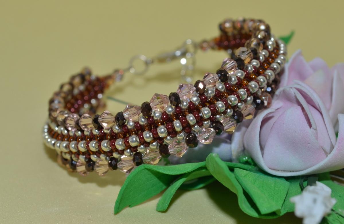 Сделала браслеты на основе квадратного жгута. Внутри мемори проволока. Поддерживает форму придает жесткость. Бисер 11 чех и 9 серебро, граненые бусины, биконусы.