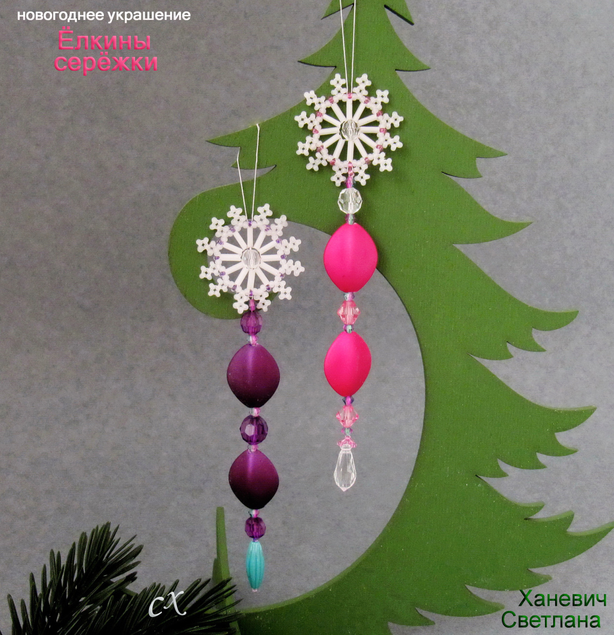 В этой парочке удачно приютились мои бисеро-стеклярусные снежинки