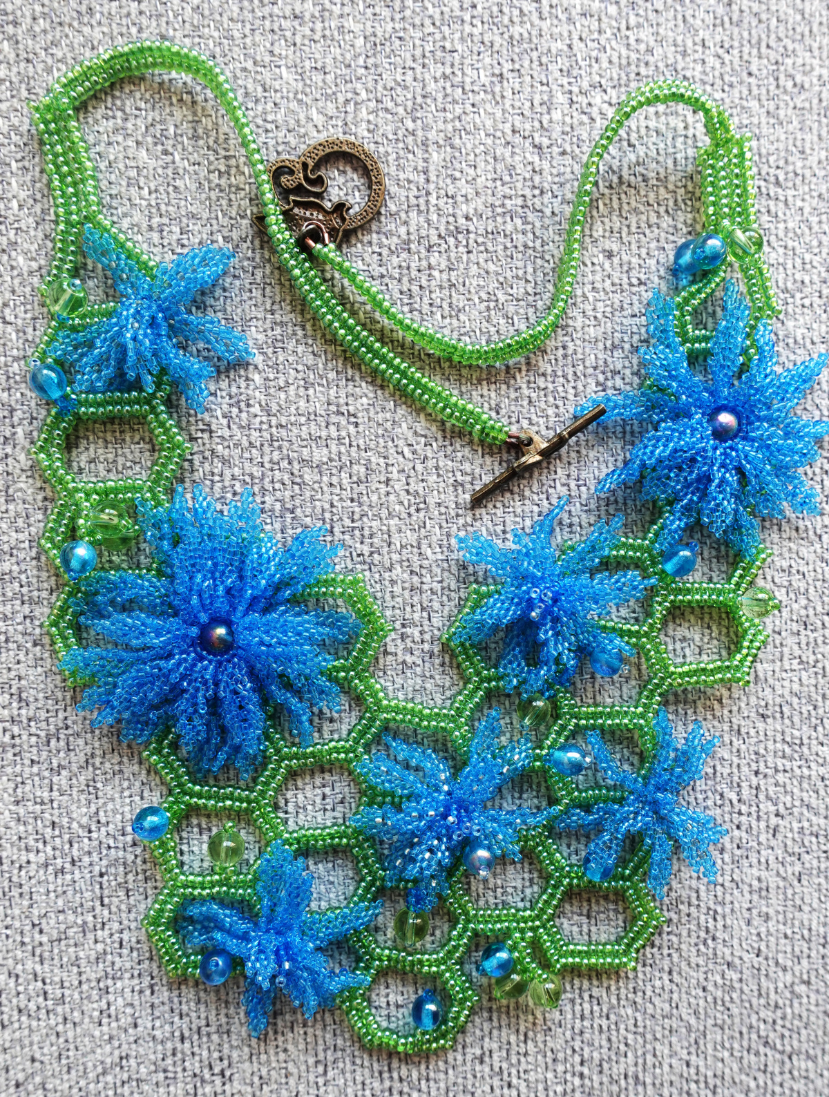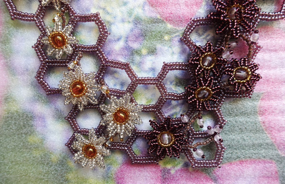 Здравствуйте, Бусинки. Вот три разных варианта на сетке-ндебеле в виде сот. Схемы составила и нарисовала Aleks, большое ей спасибо. А почему три, потому что очень понравилась сетка-ндебеле.