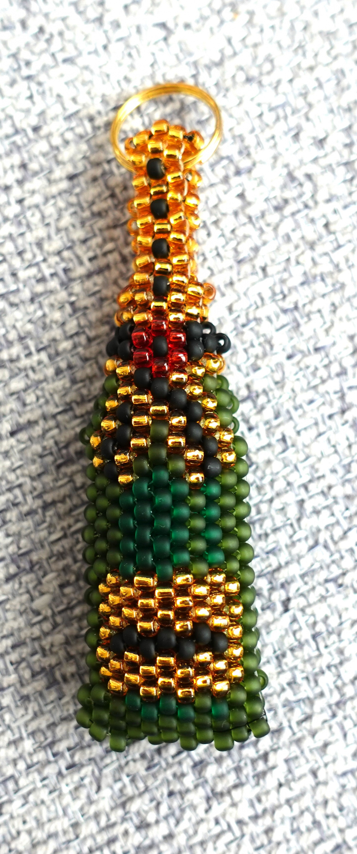 Здравствуйте, Бусинки. И снова к флешмобу, но вы не поверите, работы у меня новые. Спасибо за подсказки и схемы Ларисе Lararubka. Схема Татьяны Акиндеевой. Для подвижности ленты буду выставлять по одной. Вот первая бутылочка. И чтобы она не была плоской внутрь вставила пластиковую трубочку.