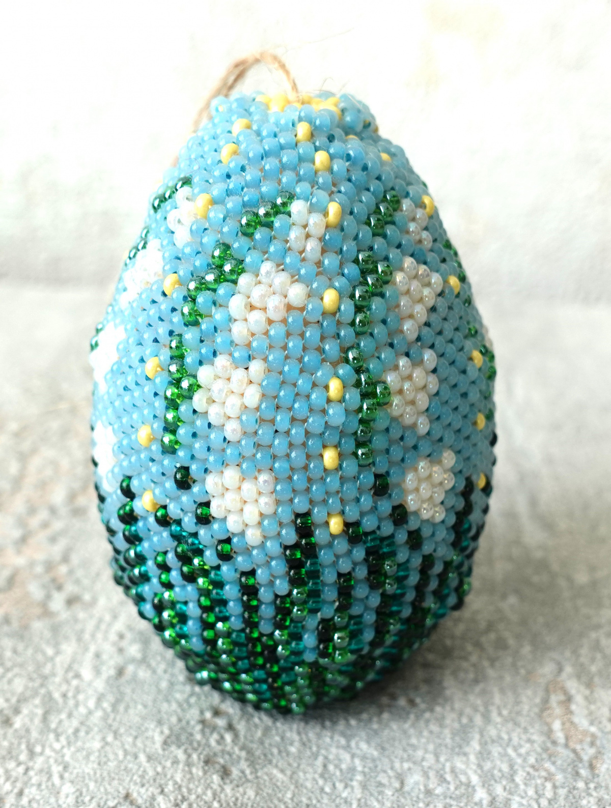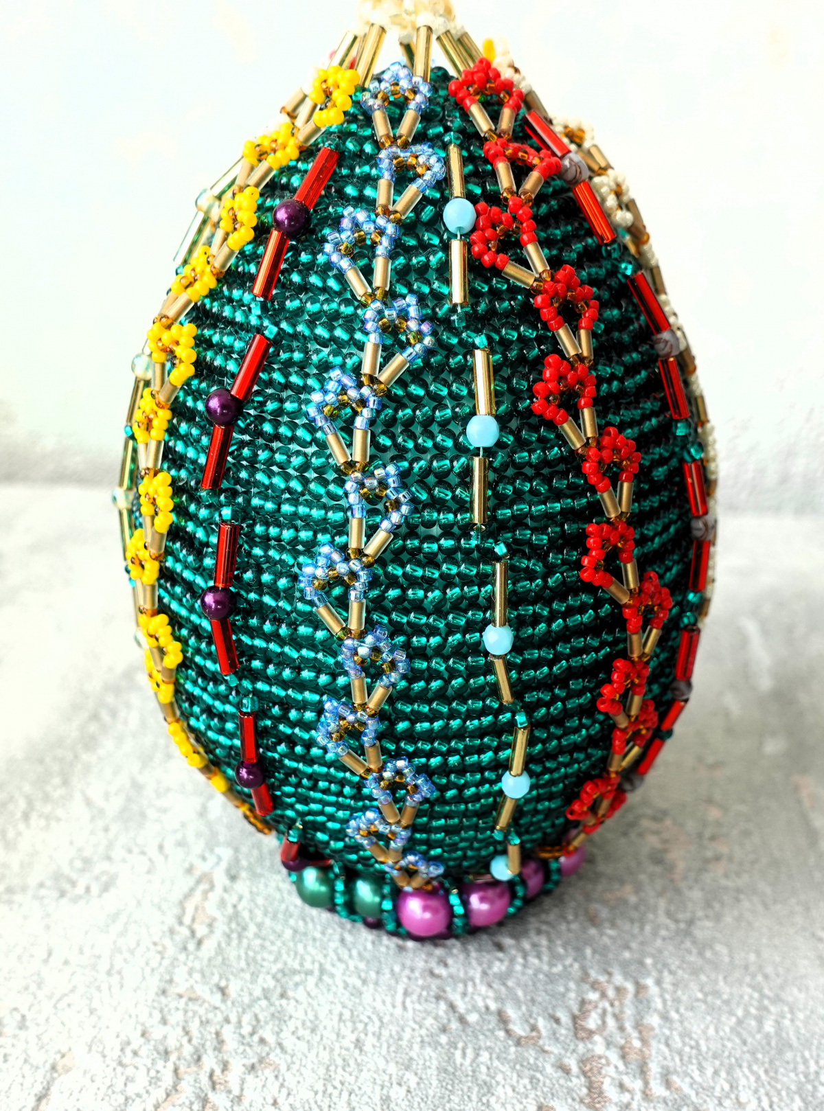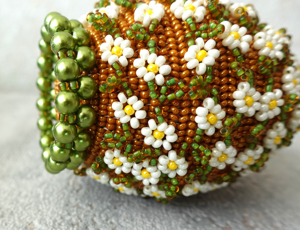 И вот оплетённое по рисунку и не очень большое, но ввиду небольшой проблемы подобрать подходящий бисер и по цвету и по размеру только одно