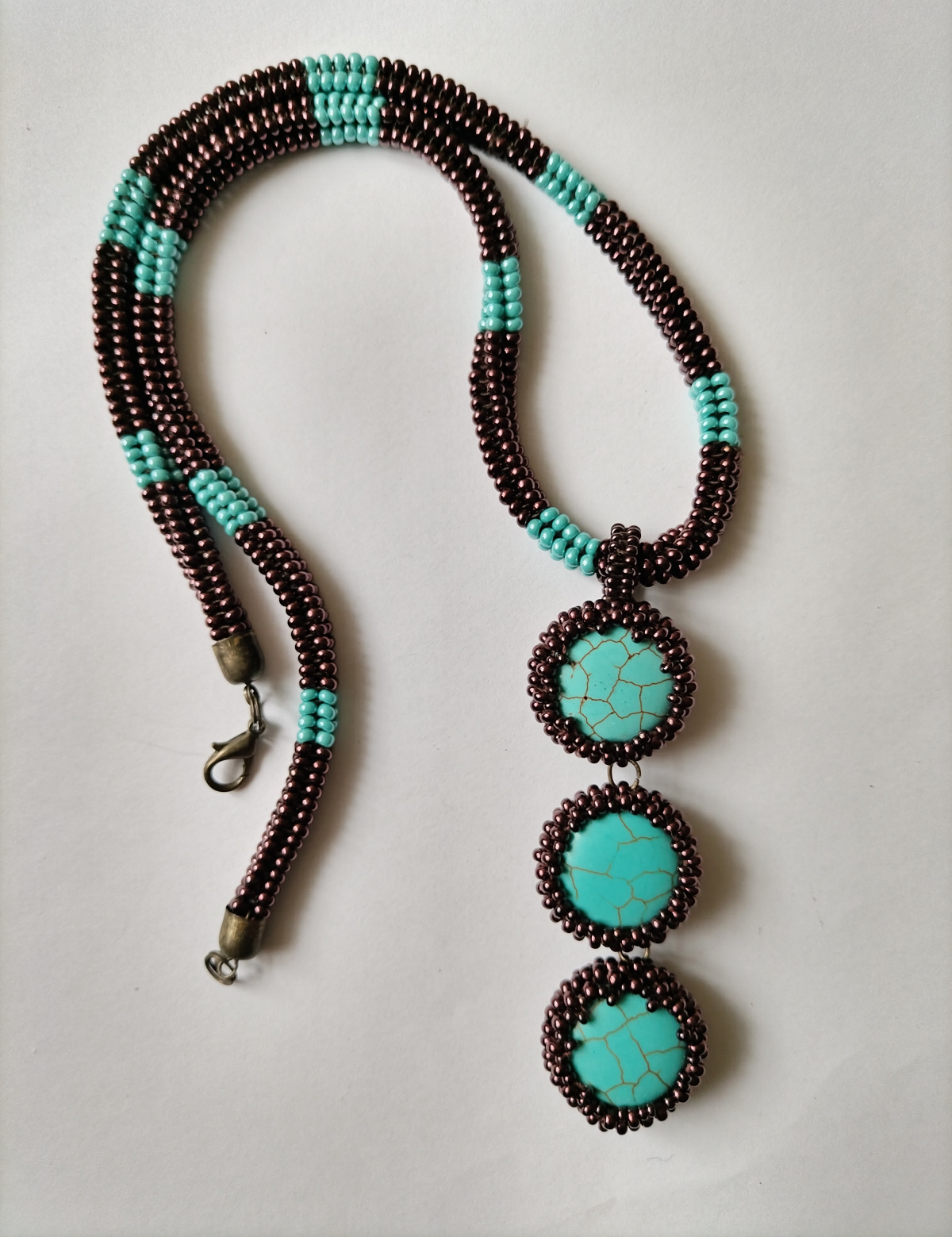 Писать об этих украшениях особо нечего. Они самые простые. Когда-то покупала бусы якобы из бирюзы, решила их переделать. Вот и пристраиваю бусины, коих достаточно много.
