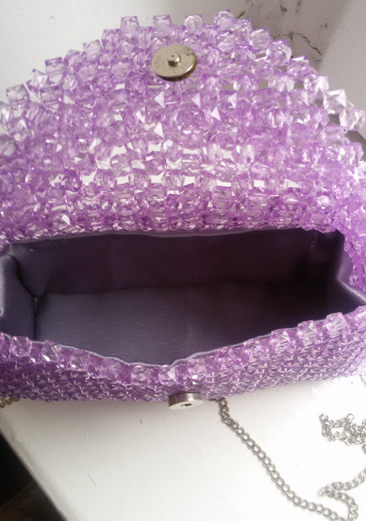 толщиной 4,5. Поэтому пришлось проходить бусины дважды, чтобы придать нужную жёсткость. Сумка получилась достаточно вместительной (мобильник, кошелек, ключи, помада). Не хотелось, чтобы было видно содержимое, поэтому сделала подкладку.