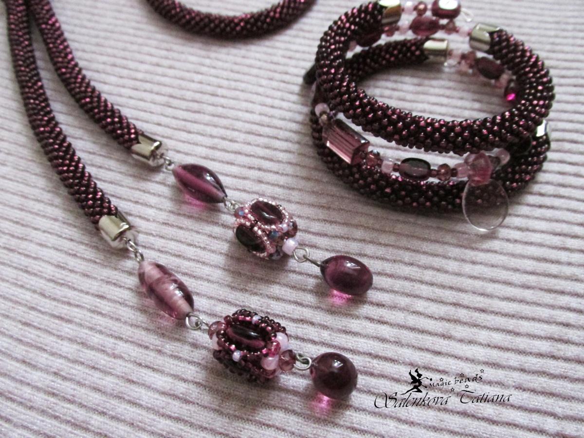 Очередной такой комплект в аметистовом цвете из любимого бисера полуогонькового бисера ).