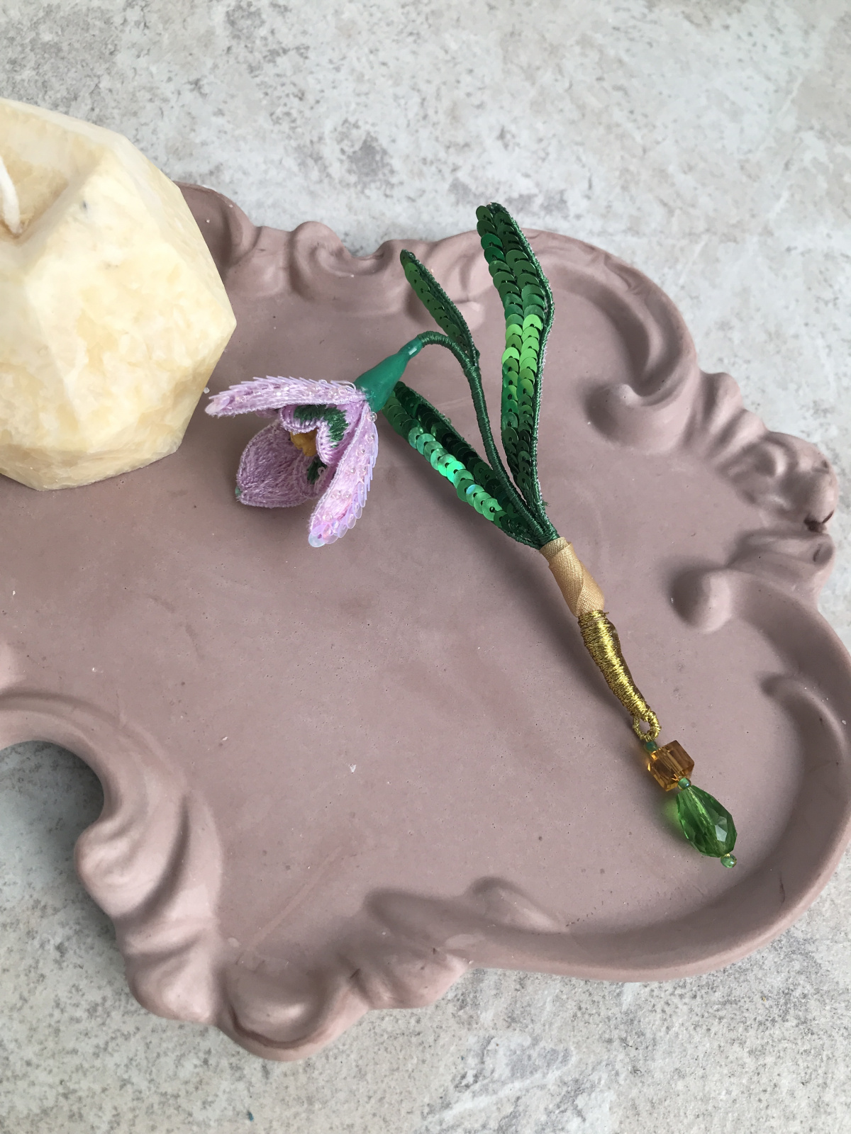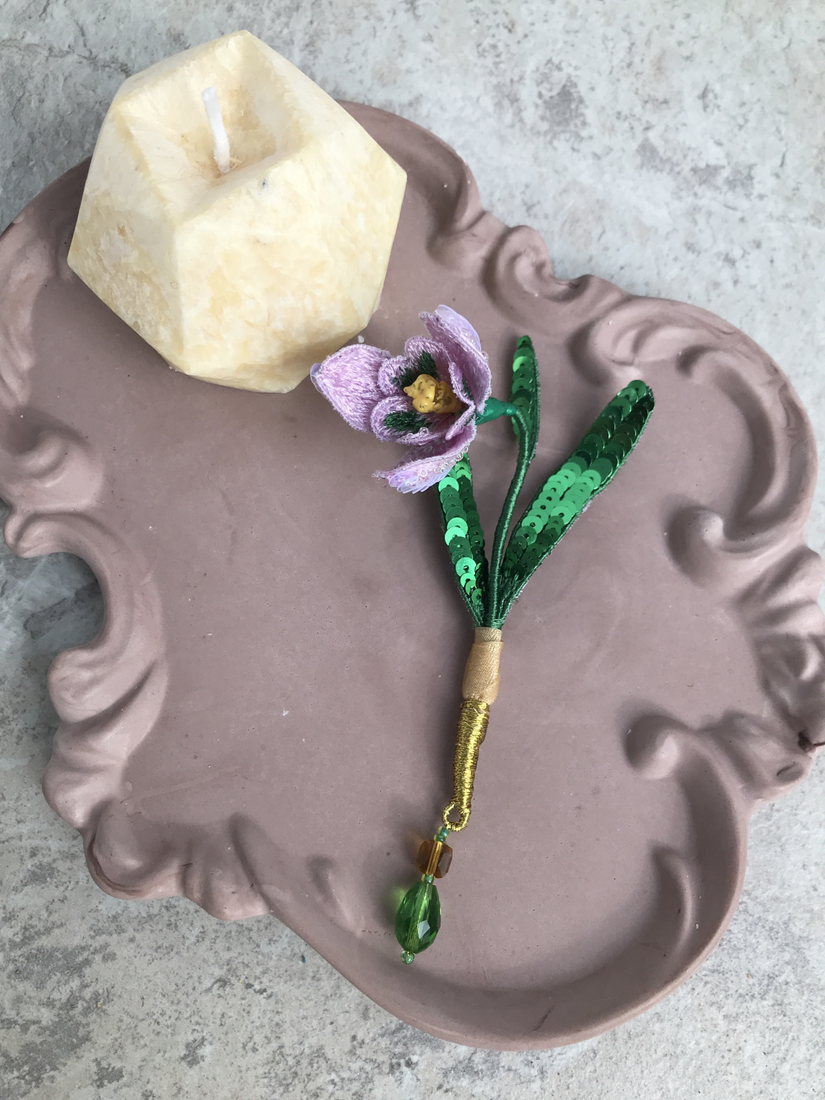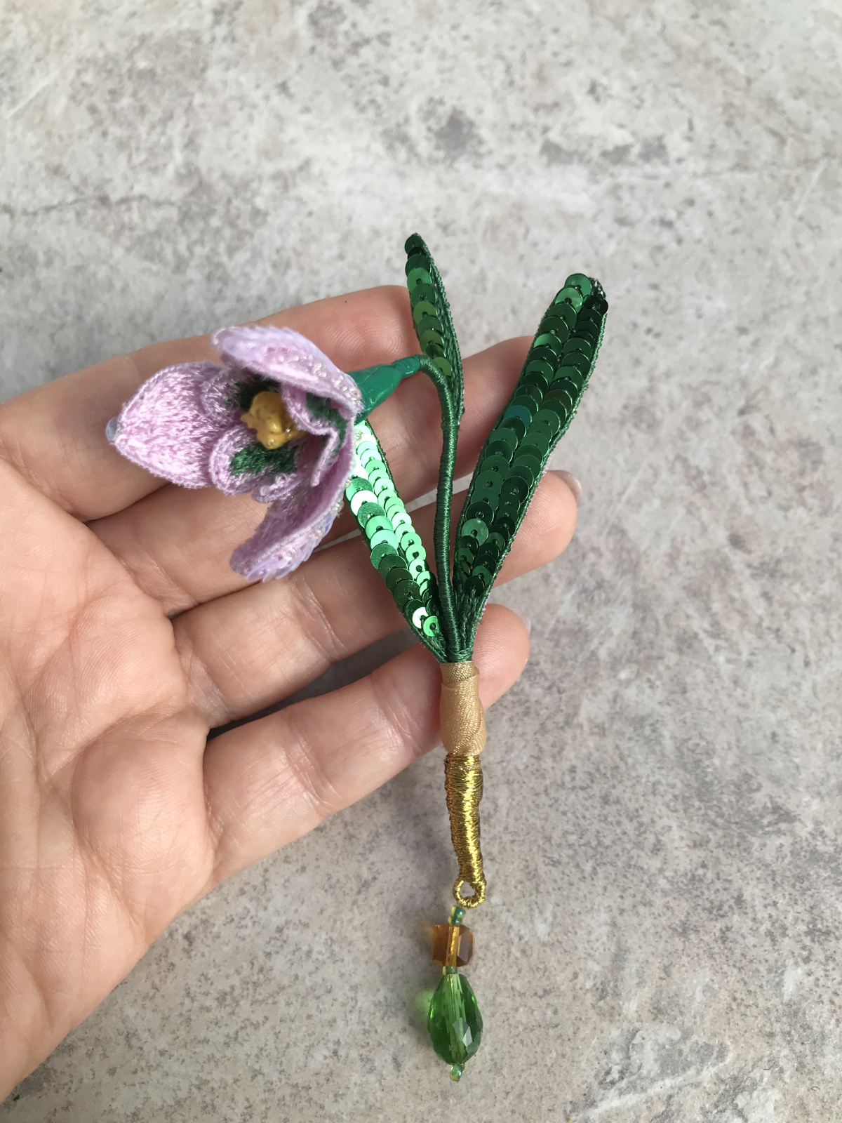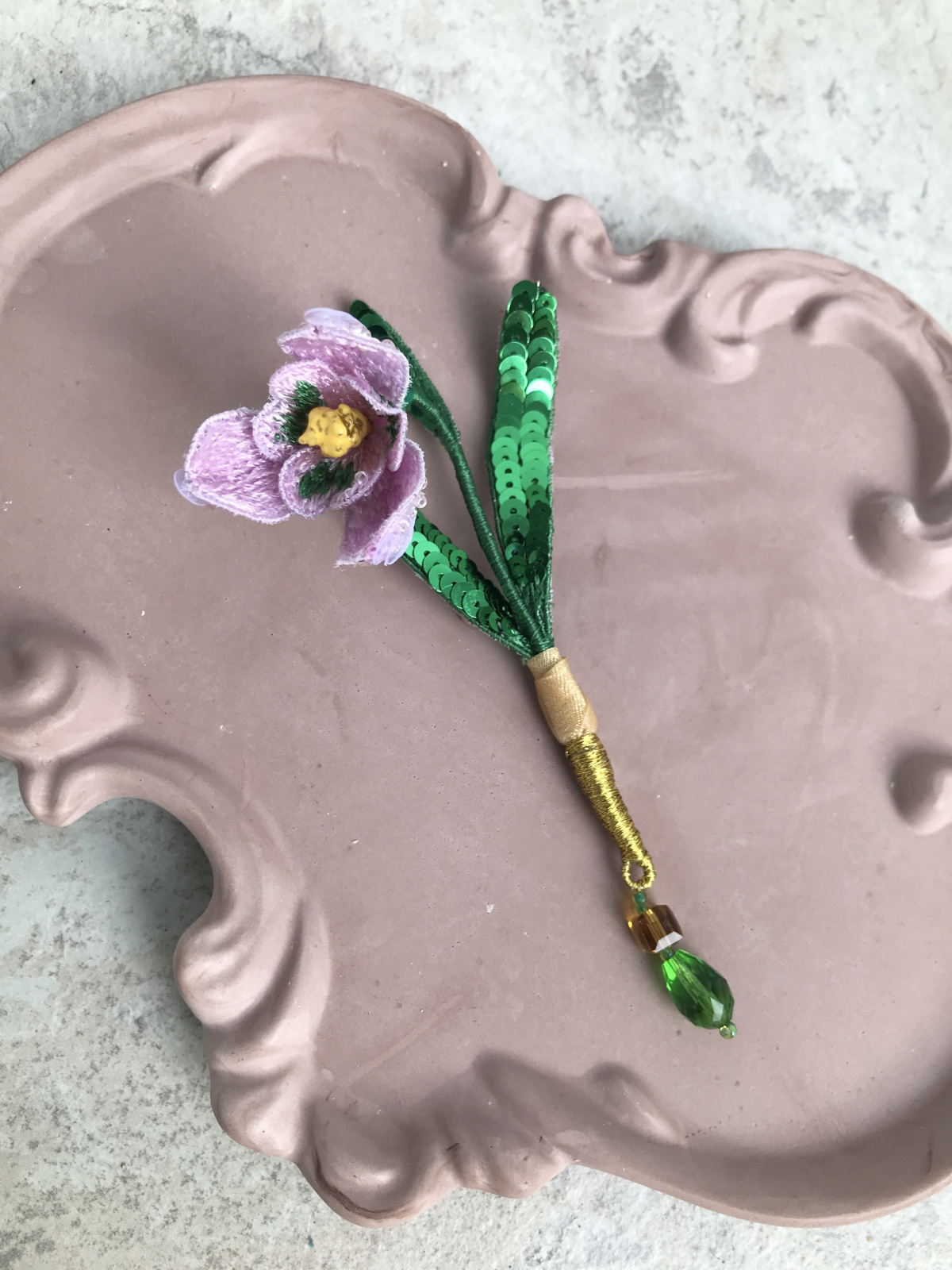Сделан на марафоне Ангелины Пеях «Нежный подснежник». Но я белый не захотела делать ), из ниток слишком маркий ). Получился вот такой цветочек. У нас такие подснежники вообще не растут. Не знаю бывают ли они в принципе розовые )
