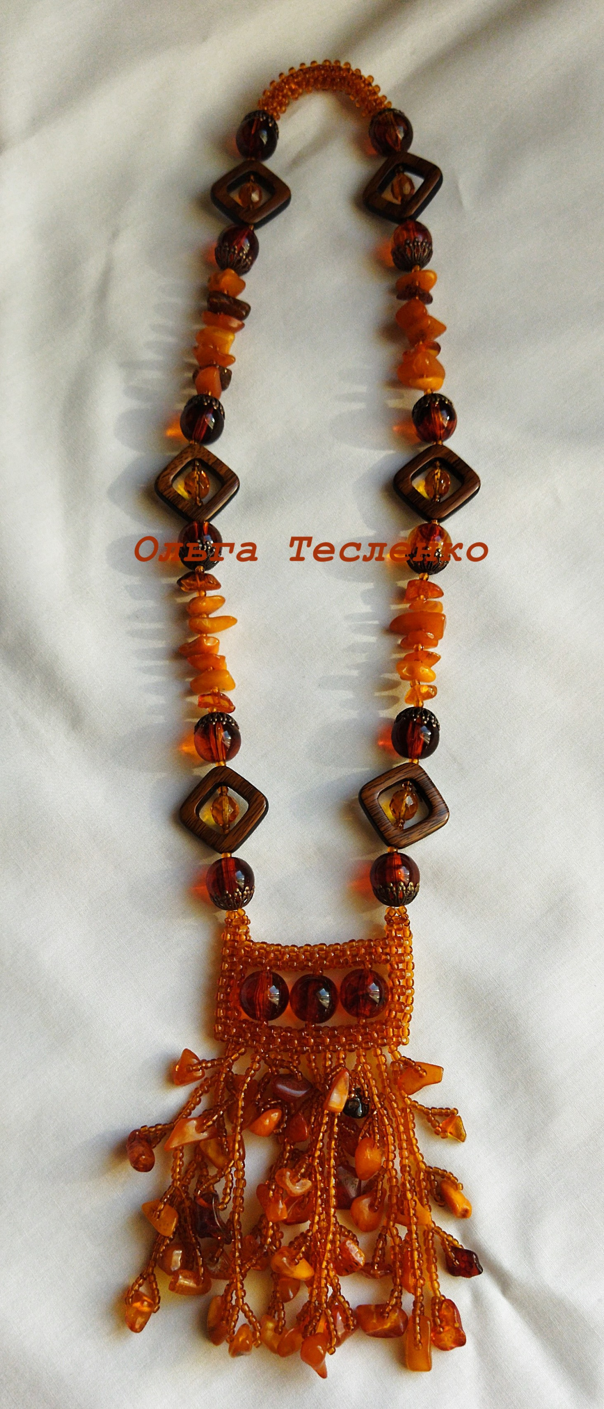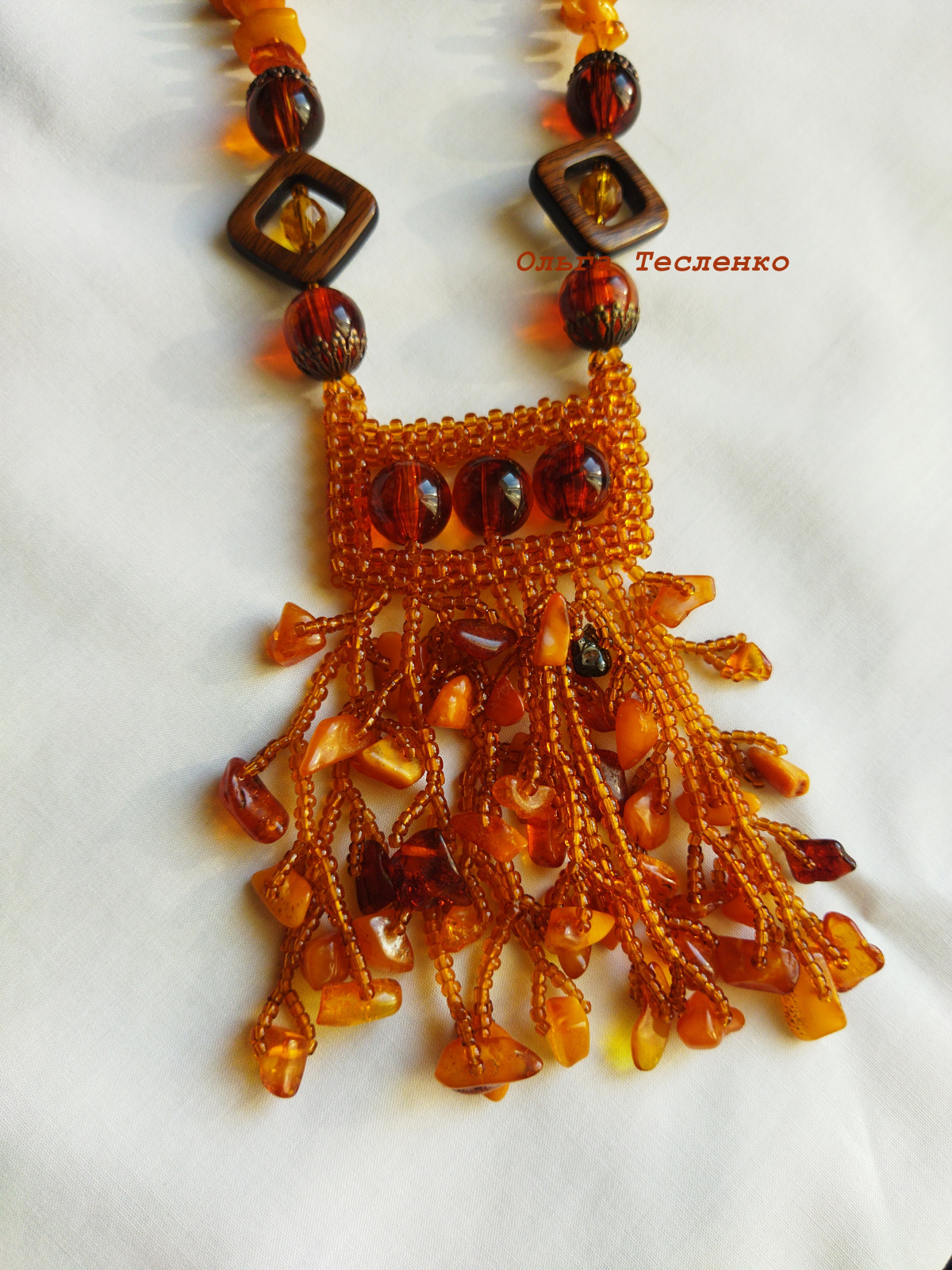 Прелесть какая! Немного в этническом стиле. Так и видится: теплый летний вечер, женщина в бежевой блузке без рукавов и этом украшении — загорелая, мечтательная — идет по улице, глаз не отвести.