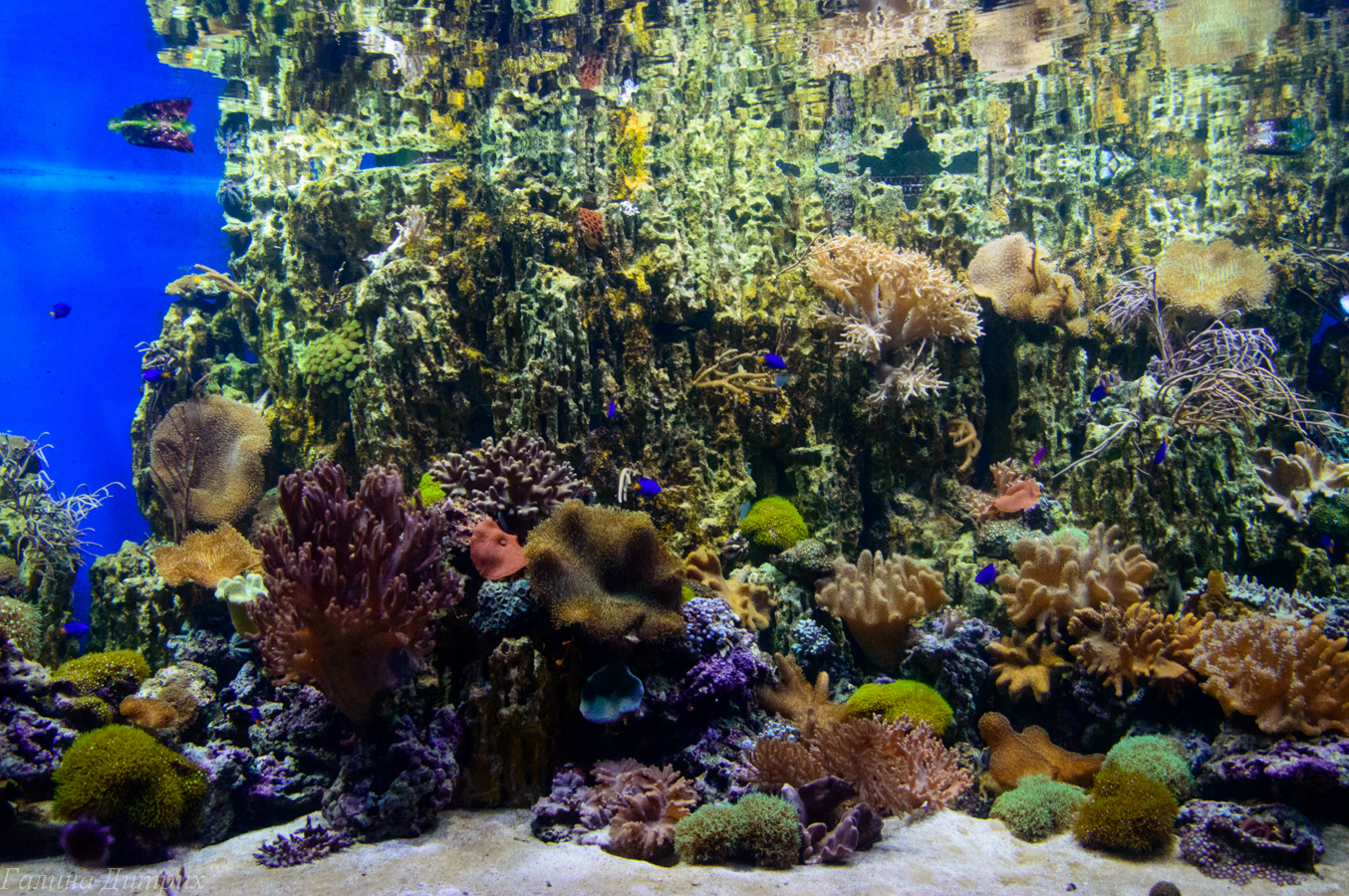 Внутри в полумраке подводного царства сотни аквариумов, есть как маленькие, так и огромные, занимающие пару залов и этажей. Рядом с каждым есть описание живущих в нем морских обитателей. Это маленькие аквариумы: народа было очень много, и нам, интровертам, конечно, было некомфортно,