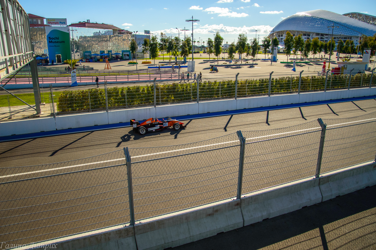 Мы прибежали на мостики, проходящие над трассой, услышав характерные звуки. По трассе ездили два болида, либо арендовали, либо тренировались пилоты.