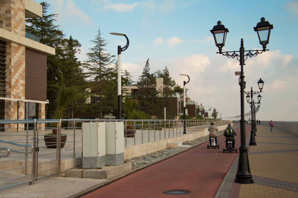 Мои муж с дочкой каждую солнечную субботу ездят в Олимпийский парк, катаются на скейте и самокате )) Я всё как-то мимо, по делам и по магазинам )) Уже привыкла к таким пейзажам… Хотя каждый закат с дочей смотрим исправно, окна квартиры выходят на морскую панораму всего центрального Сочи. Ждем НГ, чтобы как обычно в первых рядах любоваться фейерверками ))