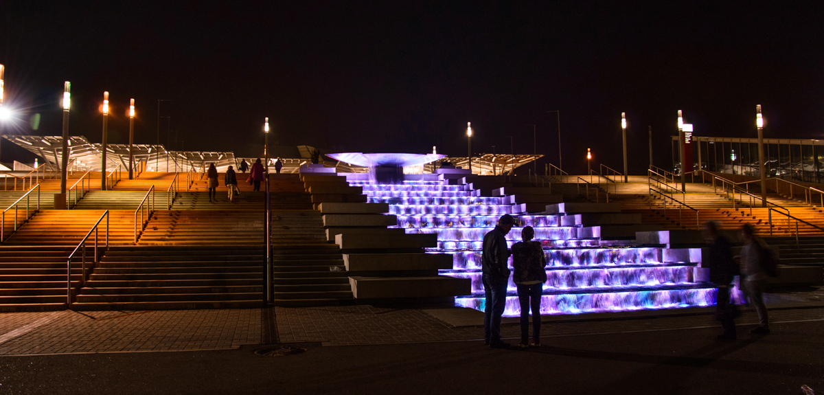 Олимпийский факел. Оказывается, перед ним проходит шоу музыкальных фонтанов, а мы и не знали. Оставим на следующий раз