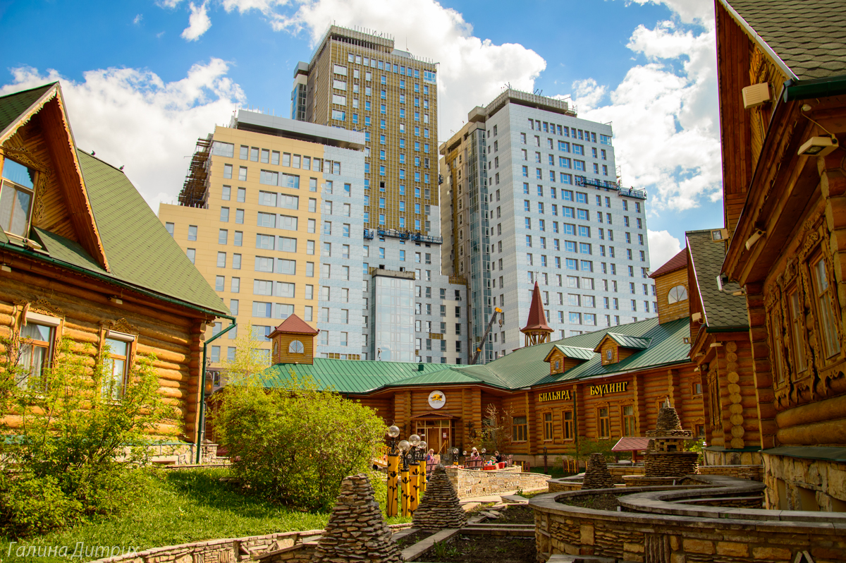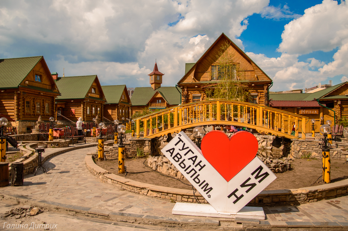 Совершенно случайно заглянули в один из двориков по пешеходной улице и обнаружили национальный комплекс «Туган Авылым», который тоже открылся к тысячелетию Казани: