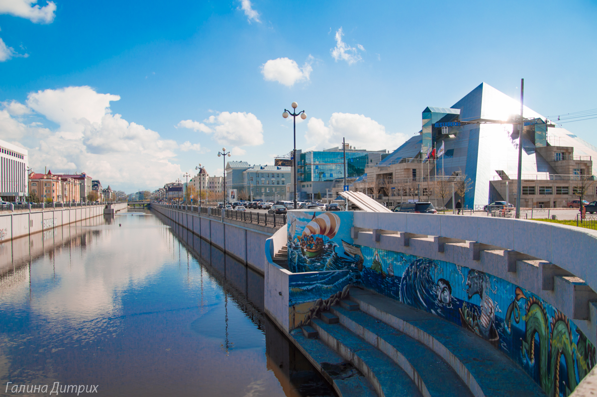 Сколько достопримечательностей может попасть на одно фото? Неведомый казанский зверёк (змей Зилант), здание цирка (в виде летающей тарелки) и метрополитен (метро в Казани появилось в 2005 году).