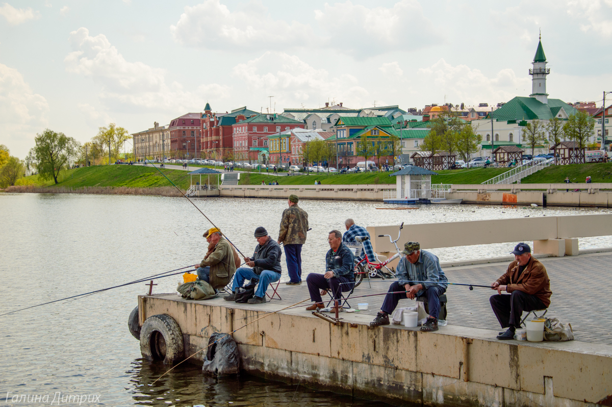 Вот за этими рыбачками нас ждет Старо-Татарская слобода: