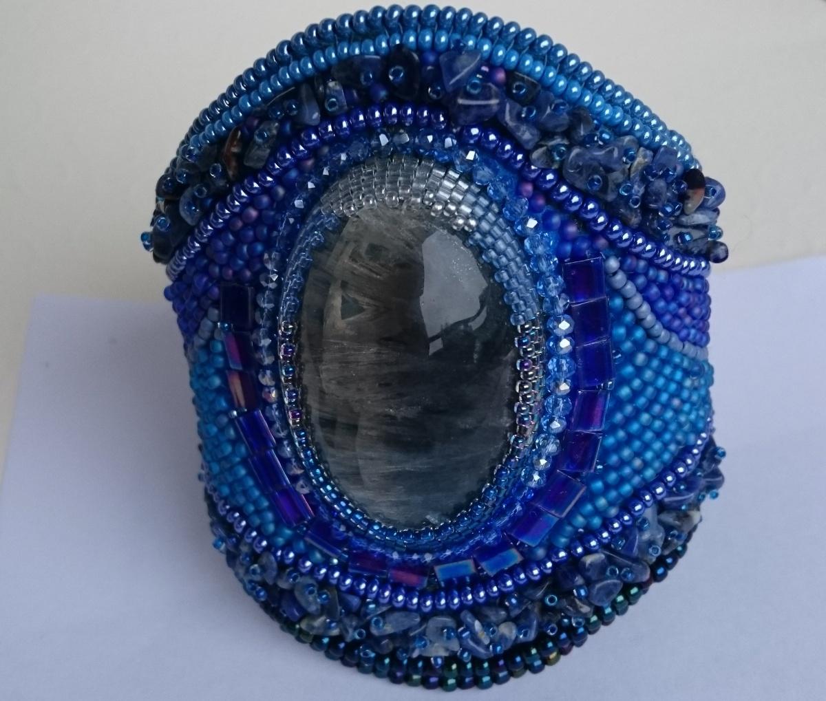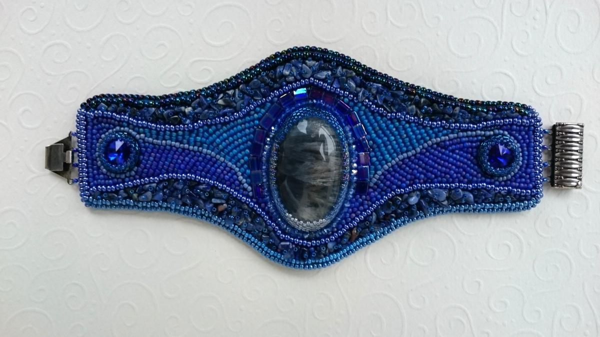 К моему новому лёгкому голубому «пушистику», надумала лёгкий, скромненькийбраслетик, но во время работы, он стал таким «солидным», вот только докончила,