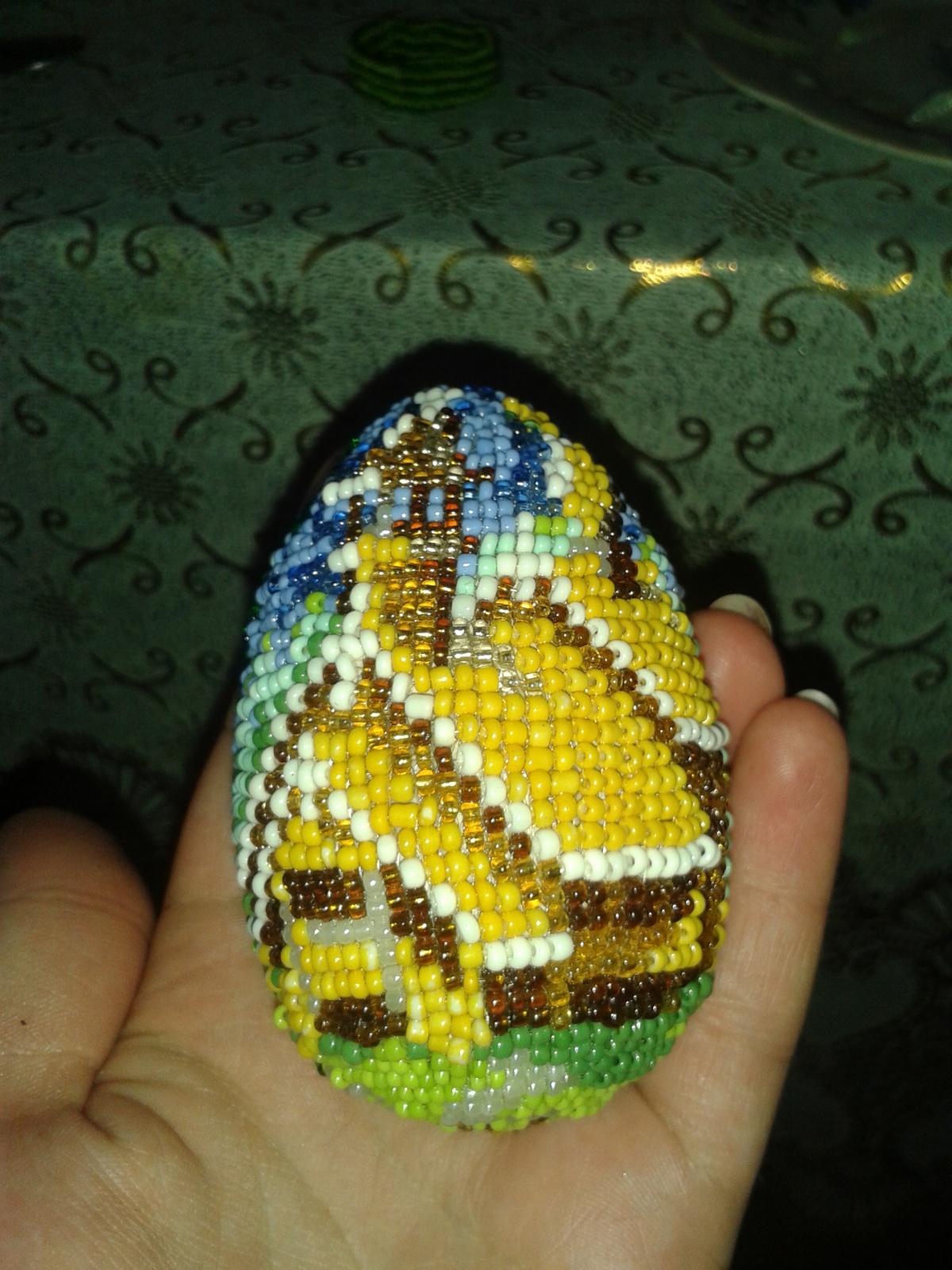 Вот Наконец Нашла в памяти компа своё яичко, Делала по схеме и мк из книги Марии Ляукиной. Правда пришлось изменить немного, так как яичко значительно отличалось, было поменьше. И фото неудачное получилось, вообщем вот