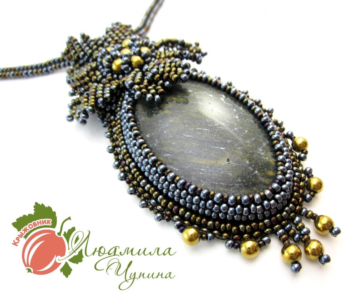 В работе прекрасный кабошон зеленого авантюрина… Кто его видел, знает, что он блестит всегда и при любом освещении… И конечно же, своей красотой этот камешек покоряет сразу.