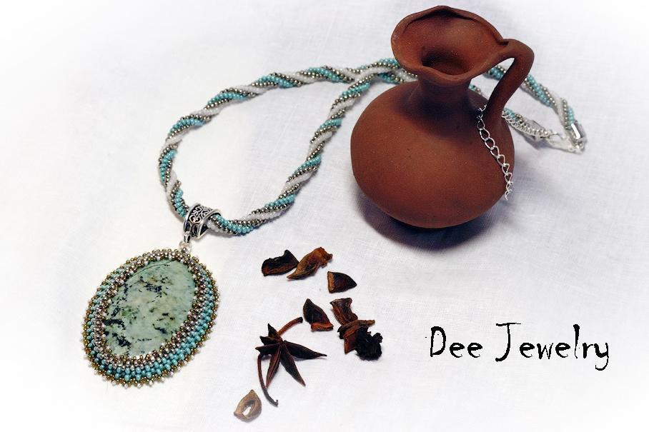 2. кулон Осенний Лес. яшма, жемчуг, бисер чех, 2011 год.