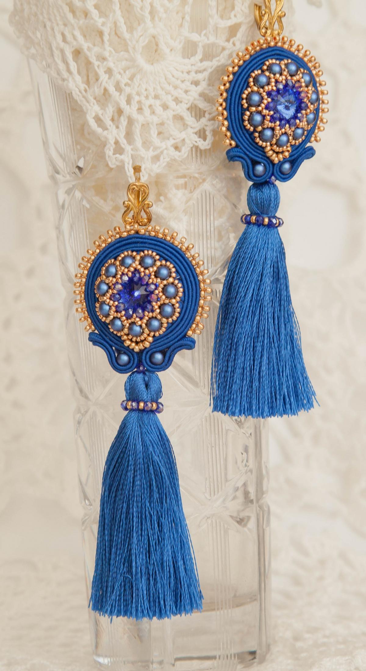 Классные серьги. Шикарное сочетание золотого и голубого цветов.